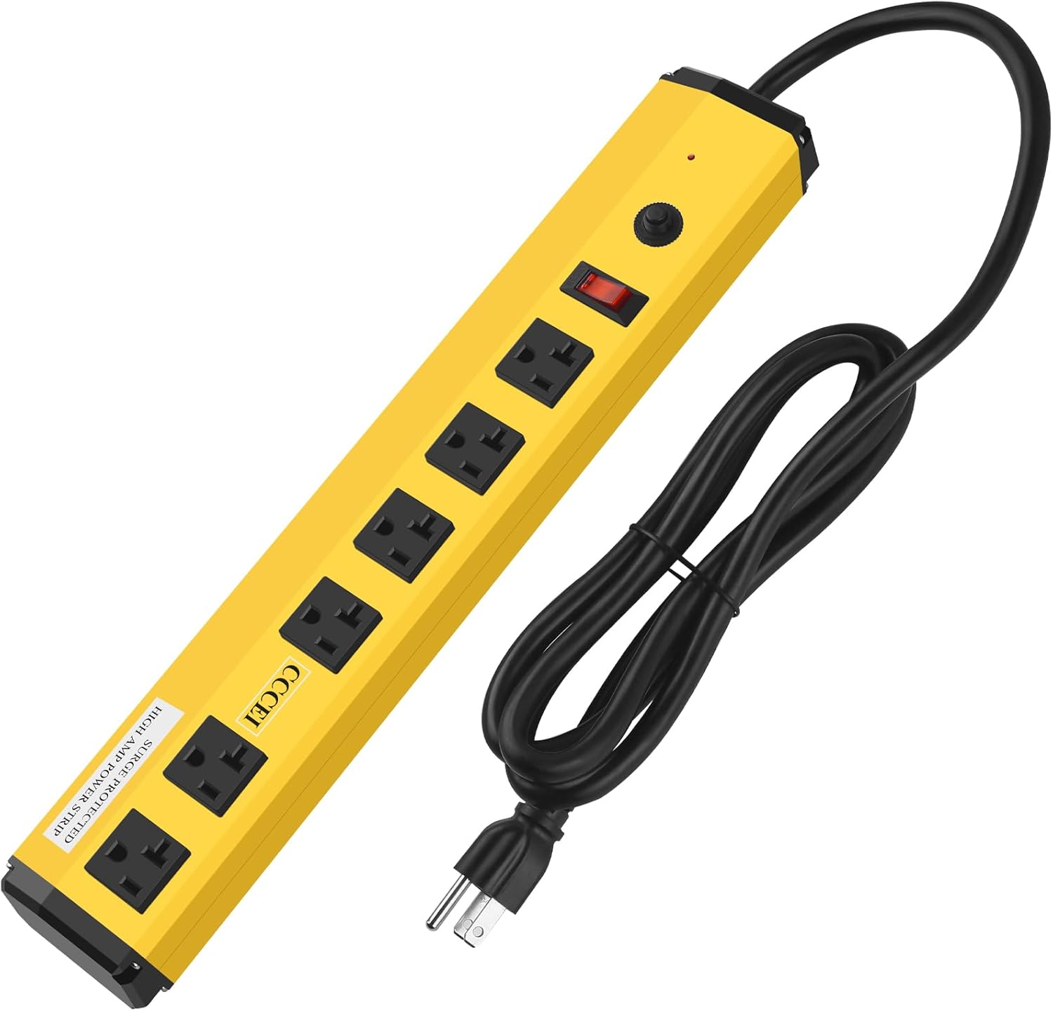 - 20 Amp high amp heavy duty power strip with metal yellow jacket housing, wall mountable and come with 6 outlets design, can be applied to high power industrial equipment.