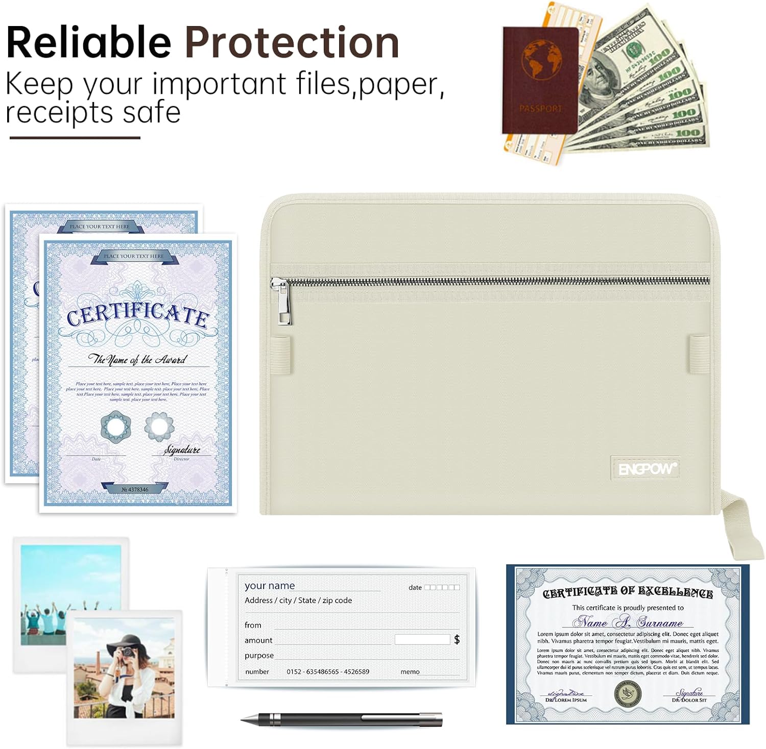 - Innovative Humanized Design: Design with a carrying strap for carrying everything you needed easily. Featuring a double zipper for convenient opening and closing,you won't have to worry about losing any important documents. The included colorful labels make categorizing your files effortless. The fireproof expanding file folder is suitable for business, travel, office, school, home storage, you can be 100% sure that your important documents are in a safe place.