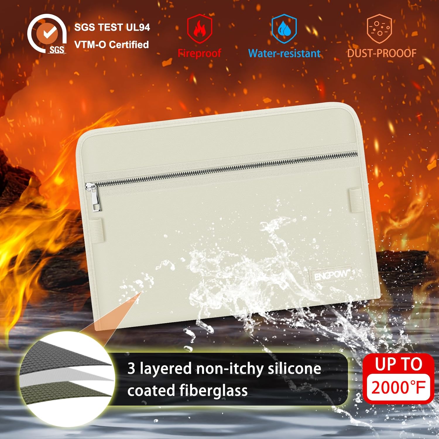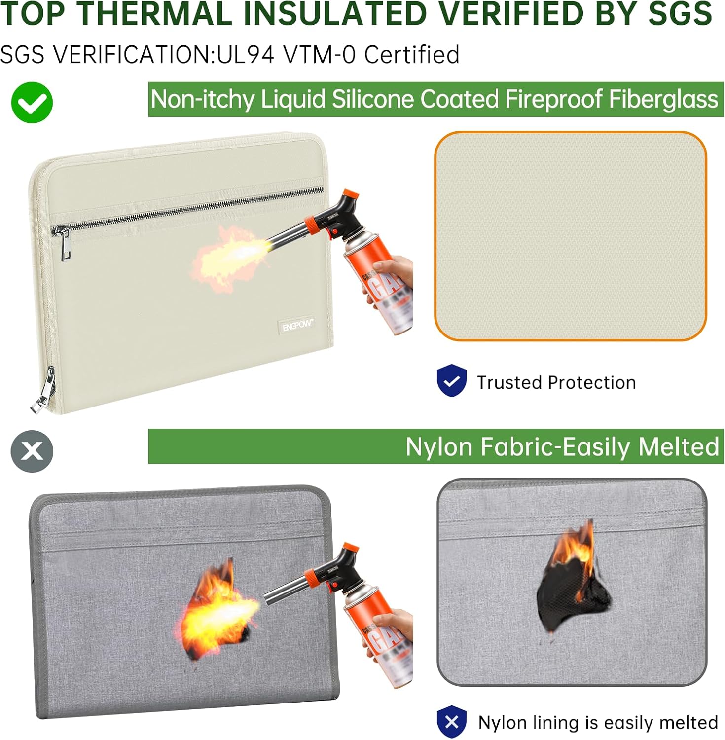 - High-Quality Materials: Protect your files with ENGPOW fireproof accordion file folder.It is made of non-itchy silicone-coated fiberglass which withstand the temperature up to 2000℉.It has been passed by SGS TEST(UL94 VTM-0 Certified).Fireproof File Folder is fireproof&Water-resistant,which can effectively protect your important documents in a fire,flood,and wet weather. They will further keep your files intact.Giving you time to save your important documents when disaster strikes.