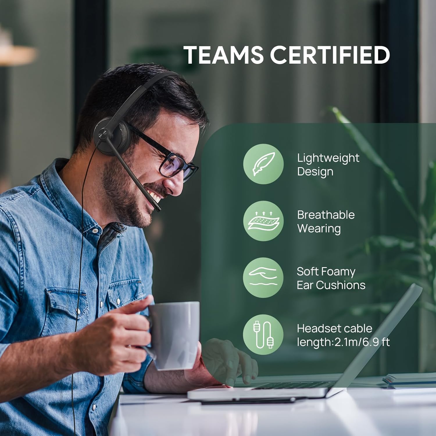 - Comfortable Wearing - Designed with replaceable soft leather ear cushions, the headset can softly cover the ear and support long conference calls, which keeps you enjoying supreme comfort all the time.The 6.89 ft (2.1 m) cable let you move freely.