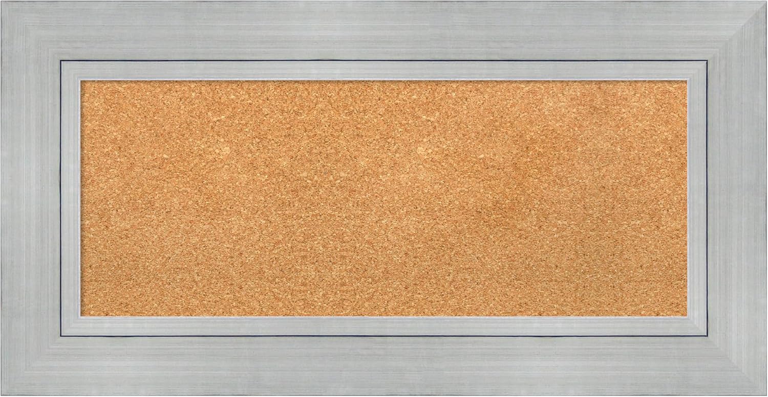 Amanti Art Natural Cork Board for Wall, 19x37 Vision Board with Silver Wood Frame, Medium Corkboard Office Decor for Home Organization, Casual Corkboard Pinboard to Display Items for Home