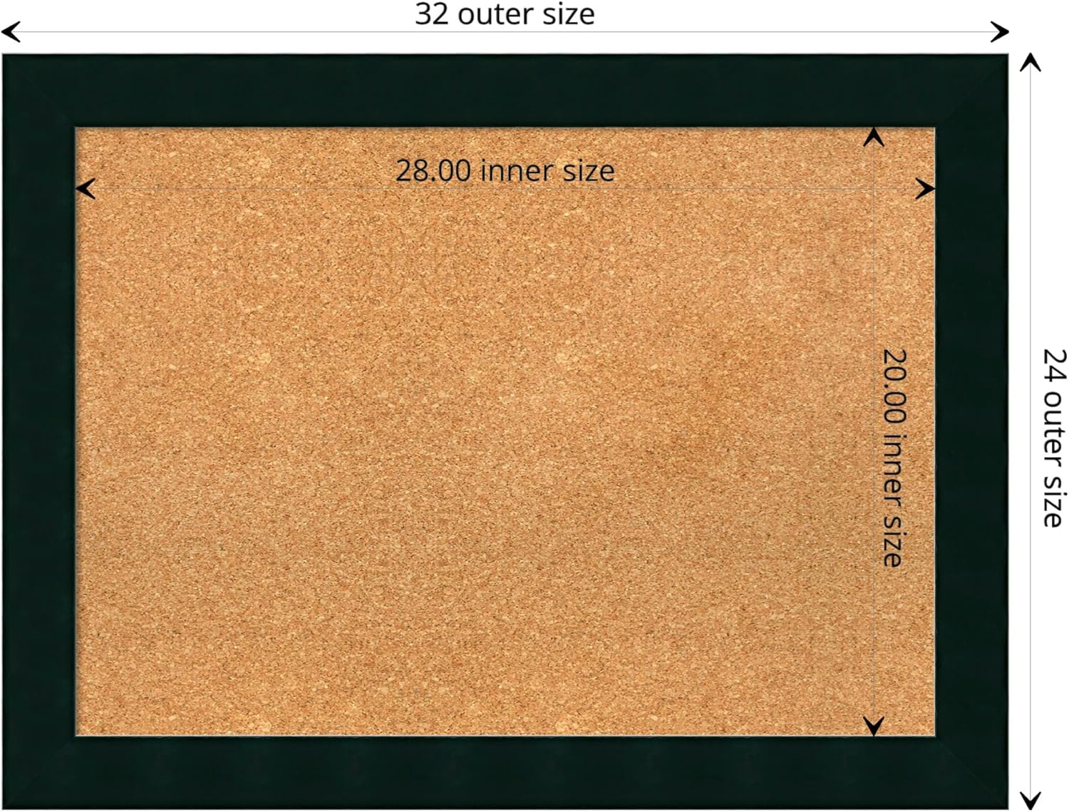 - DIMENSIONS: The overall size of this framed corkboard measures 32 in. x 24 in., including the frame. Its functional cork board area measures 28 in. x 20 in.