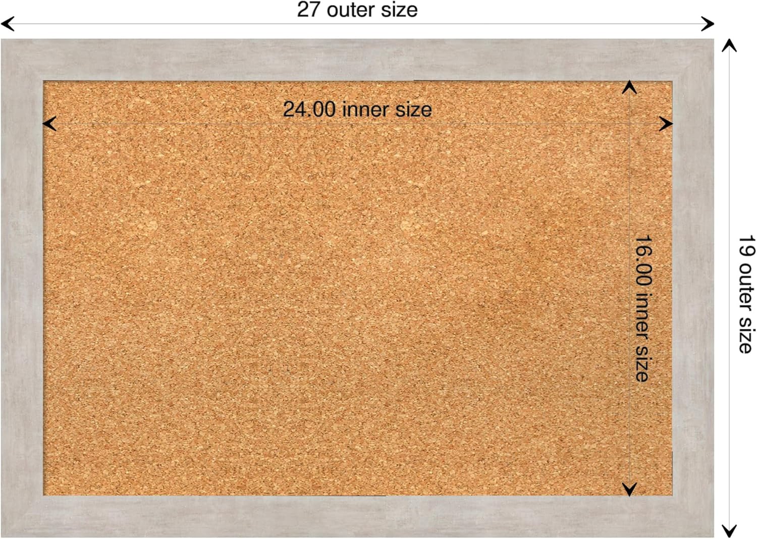 - DIMENSIONS: The overall size of this framed corkboard measures 27 in. x 19 in., including the frame. Its functional cork board area measures 24 in. x 16 in.