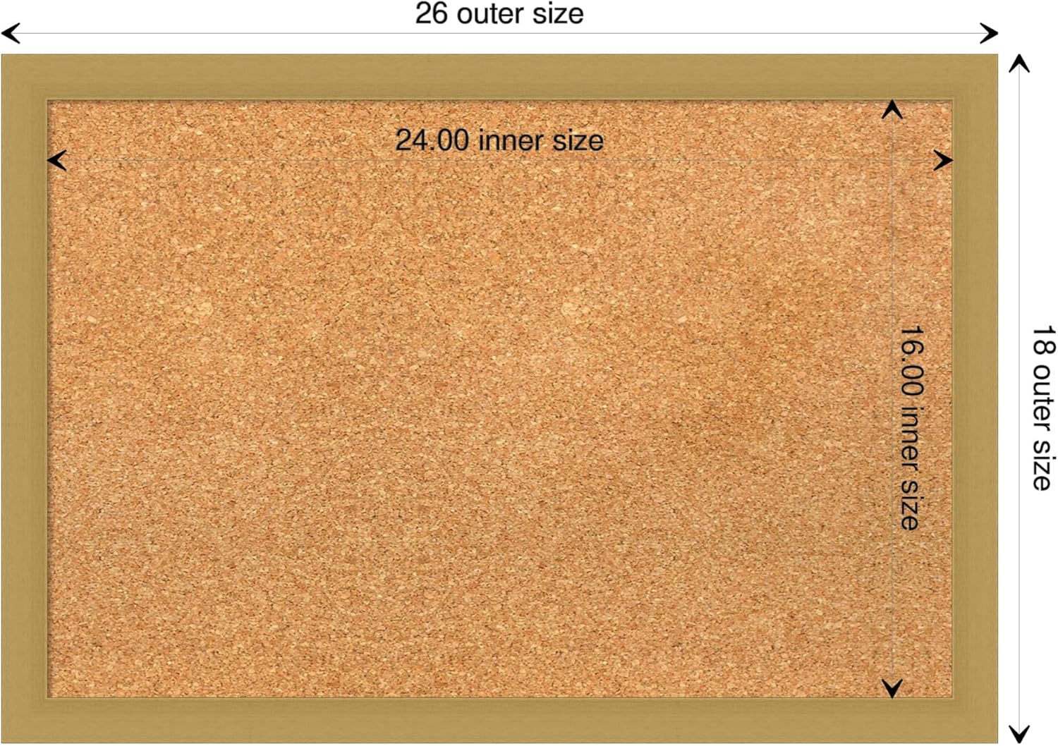 - DIMENSIONS: The overall size of this framed cork board measures 26 in. x 18 in., including the frame. Its functional cork board area measures 24 in. x 16 in.