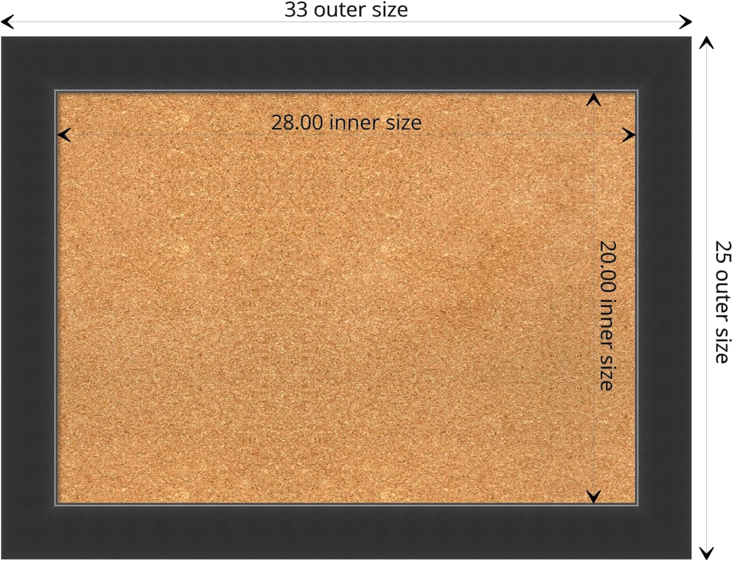 - DIMENSIONS: The overall size of this framed corkboard measures 33 in. x 25 in., including the frame. Its functional cork board area measures 28 in. x 20 in.