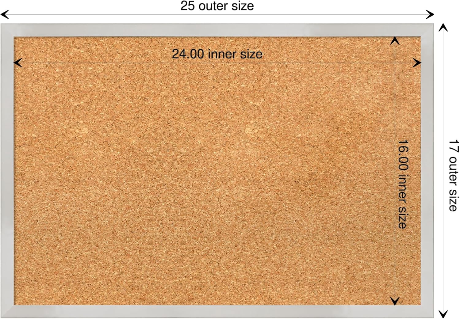 Amanti Art Natural Cork Board for Wall, 17x25 Vision Board with Silver Wood Frame, Medium Corkboard Office Decor for Home Organization, Modern Contemporary Corkboard Pinboard to display items for home