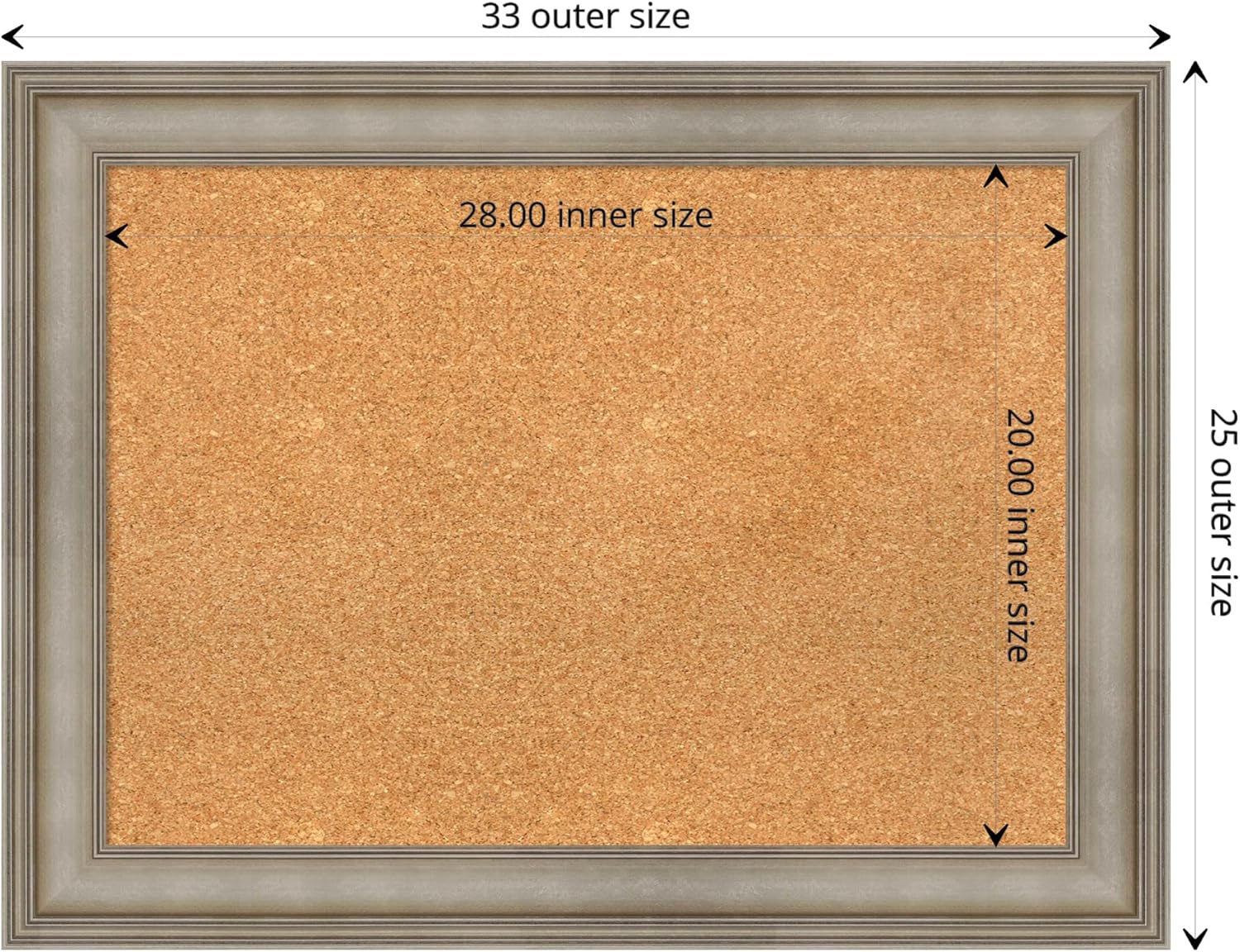 Amanti Art Natural Cork Board for Wall, 25x33 Vision Board with Silver Wood Frame, Medium Corkboard Office Decor for Home Organization, Traditional Corkboard Pinboard to display items for home