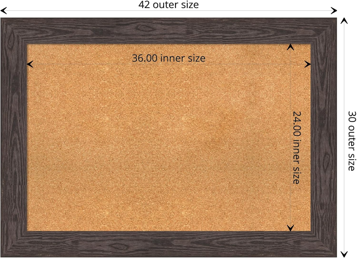 - DIMENSIONS: The overall size of this framed corkboard measures 42 in. x 30 in., including the frame. Its functional cork board area measures 36 in. x 24 in.