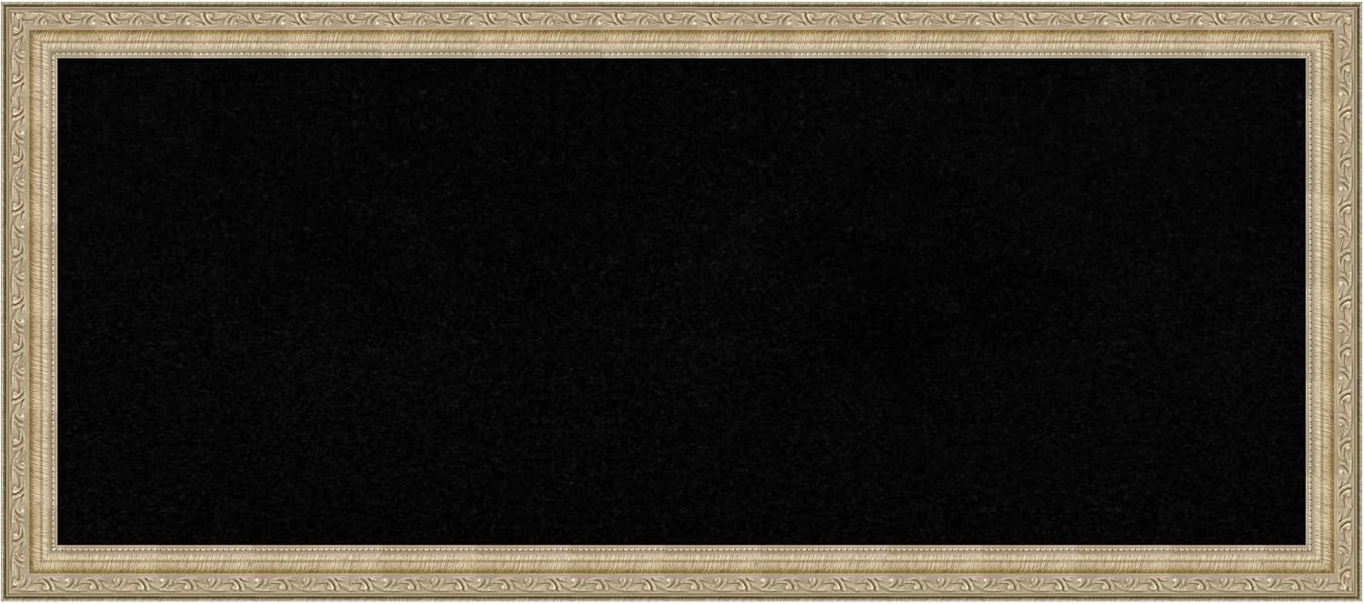 Amanti Art Black Cork Board for Wall, 14x32 Vision Board with Champagne Frame, Medium Corkboard Office Decor for Home Organization, Traditional Corkboard Pinboard to display items for home