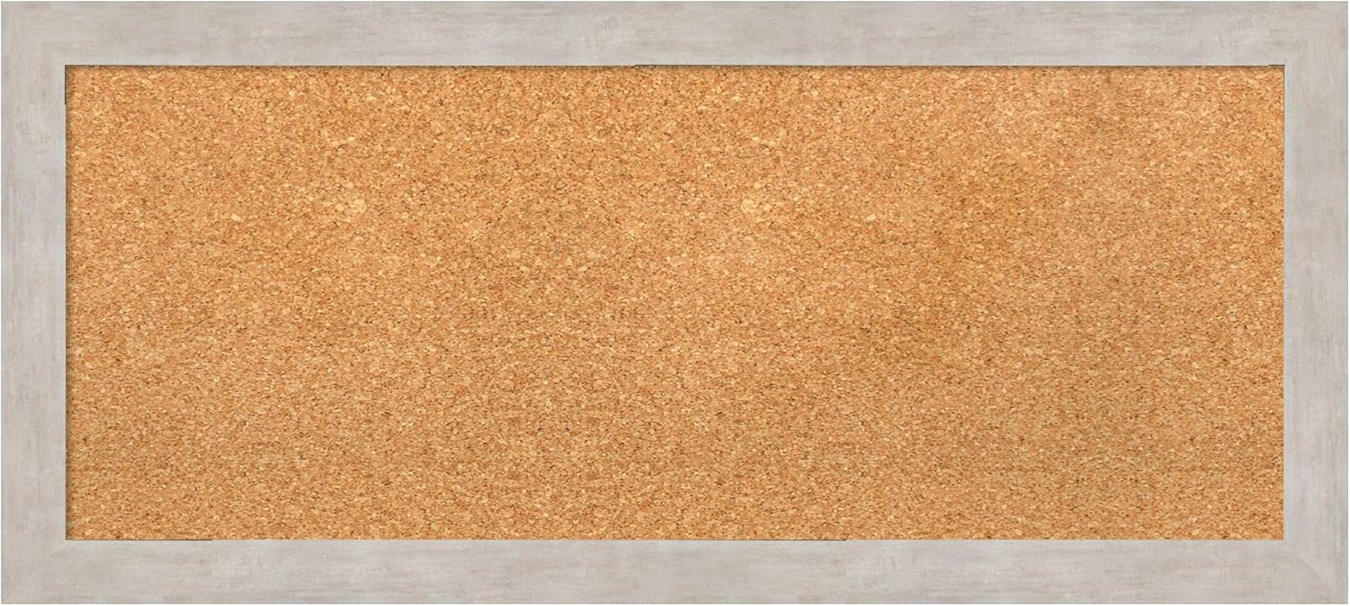 Amanti Art Natural Cork Board for Wall, 15x33 Vision Board with Silver Wood Frame, Medium Corkboard Office Decor for Home Organization, Casual Corkboard Pinboard to display items for home organization