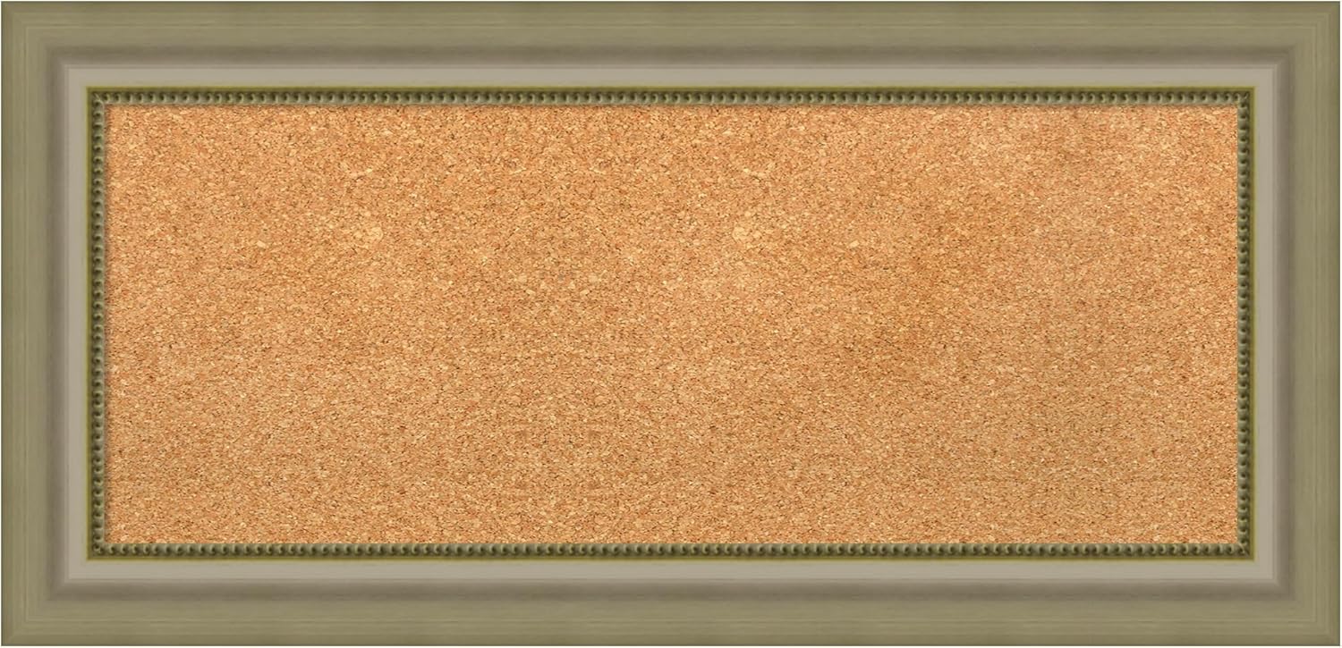 Amanti Art Natural Cork Board for Wall, 17x35 Vision Board with Silver Wood Frame, Medium Corkboard Office Decor for Home Organization, Traditional Corkboard Pinboard to Display Items for Home