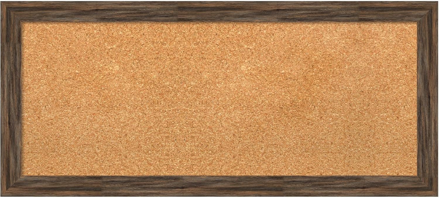 Amanti Art Natural Cork Board for Wall, 15x33 Vision Board with Brown Wood Frame, Medium Corkboard Office Decor for Home Organization, Rustic Farmhouse Corkboard Pinboard to display items for home