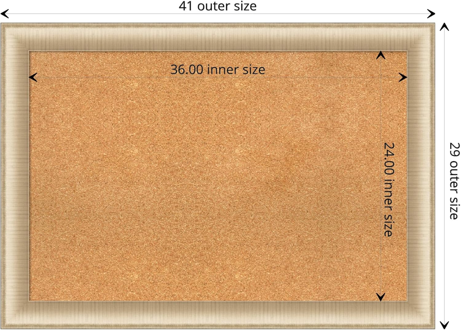 - DIMENSIONS: The overall size of this framed cork board measures 41 in. x 29 in., including the frame. Its functional cork board area measures 36 in. x 24 in.