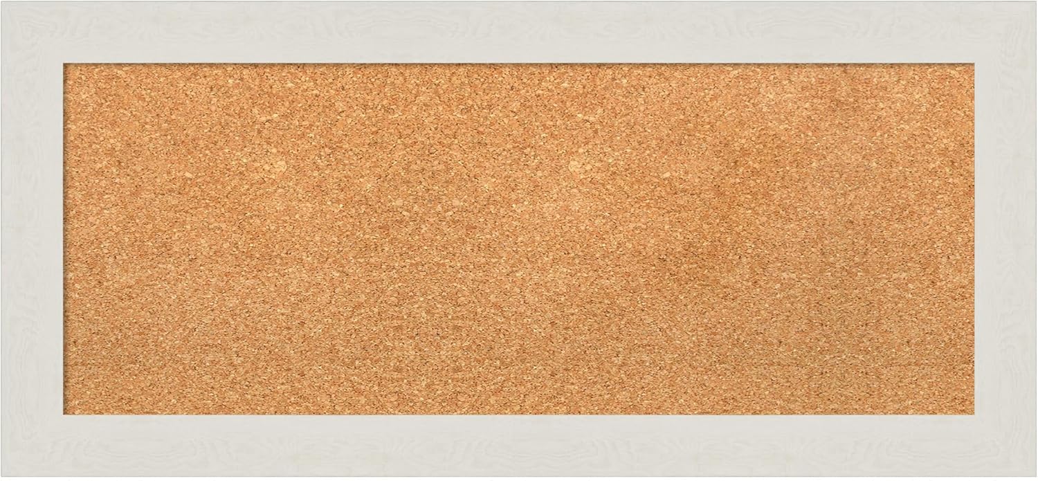 Amanti Art Natural Cork Board for Wall, 15x33 Vision Board with White Frame, Medium Corkboard Office Decor for Home Organization, Country Rustic Corkboard Pinboard to Display Items for Home