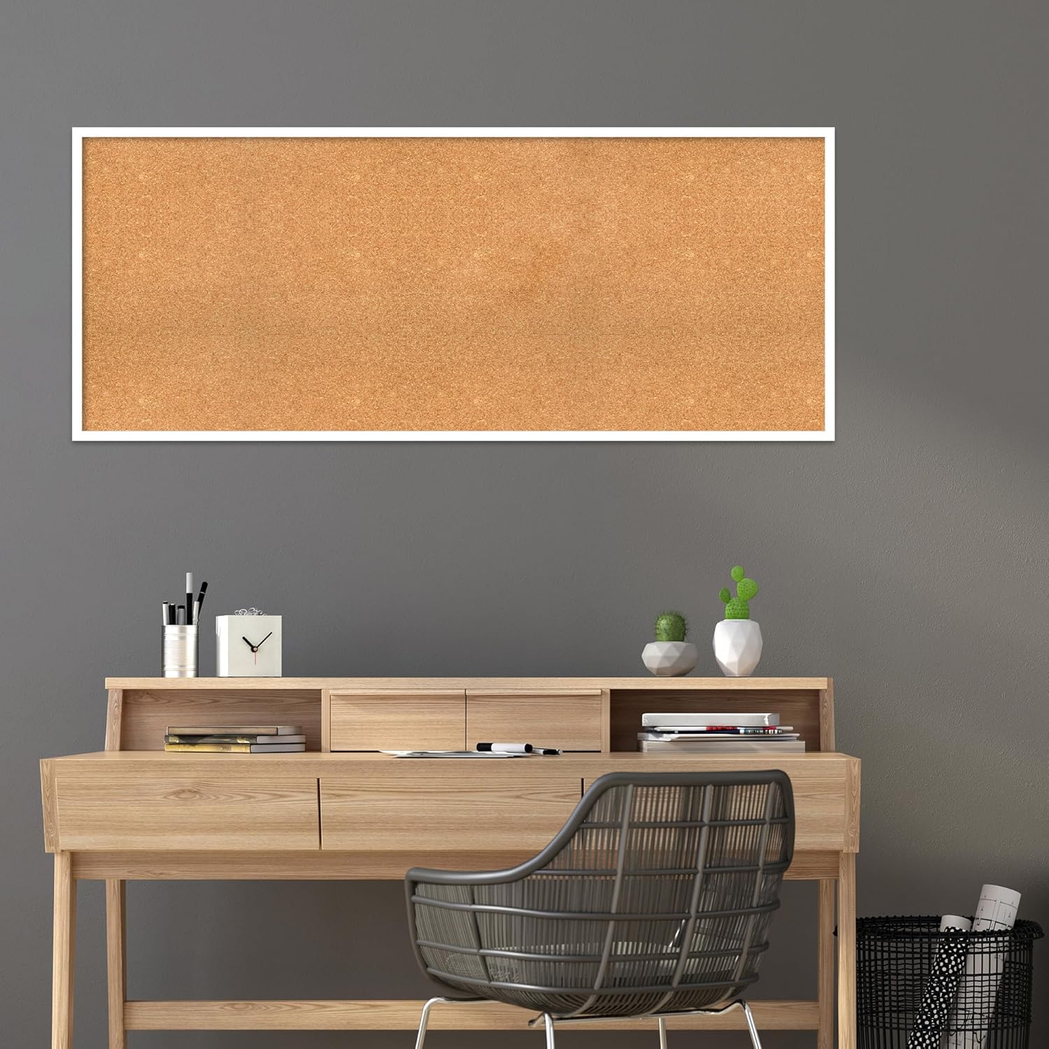 Amanti Art Natural Cork Board for Wall, 25x61 Vision Board with White Frame, Oversize Corkboard Office Decor for Home Organization, Modern Corkboard Pinboard to Display Items for Home Organization in