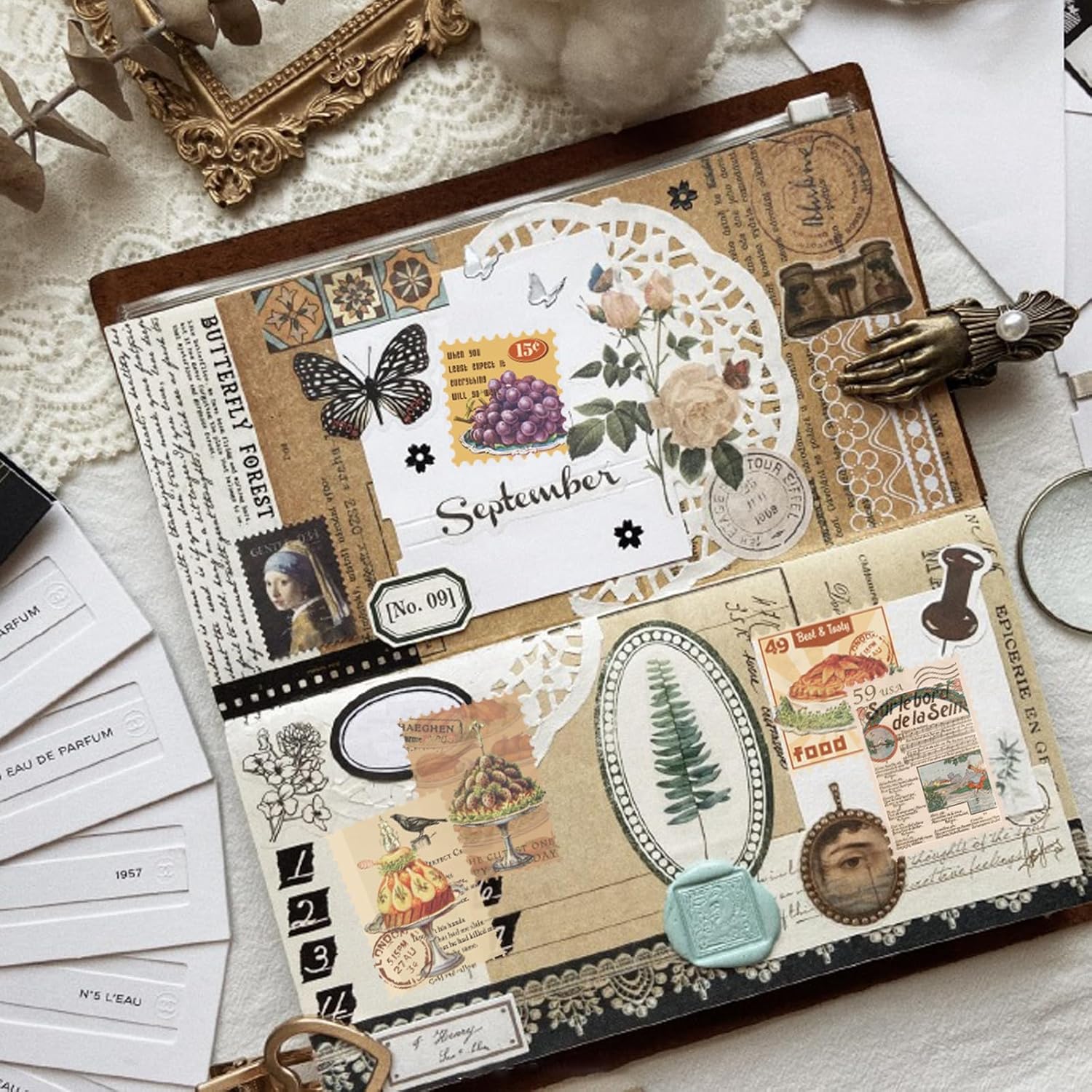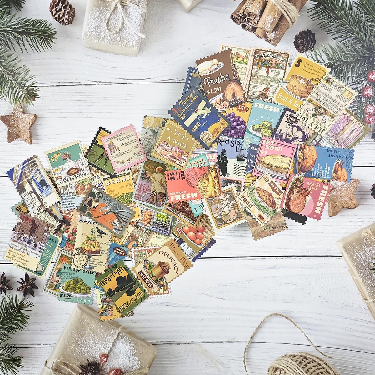 Prstincol 100 Pcs Scrapbooking Stickers,Food Stickers for Scrapbooking,Vintage Stamp Sticker for Journaling,Retro Poster Sticker for Water Bottle Laptop Phones Bullet Journal