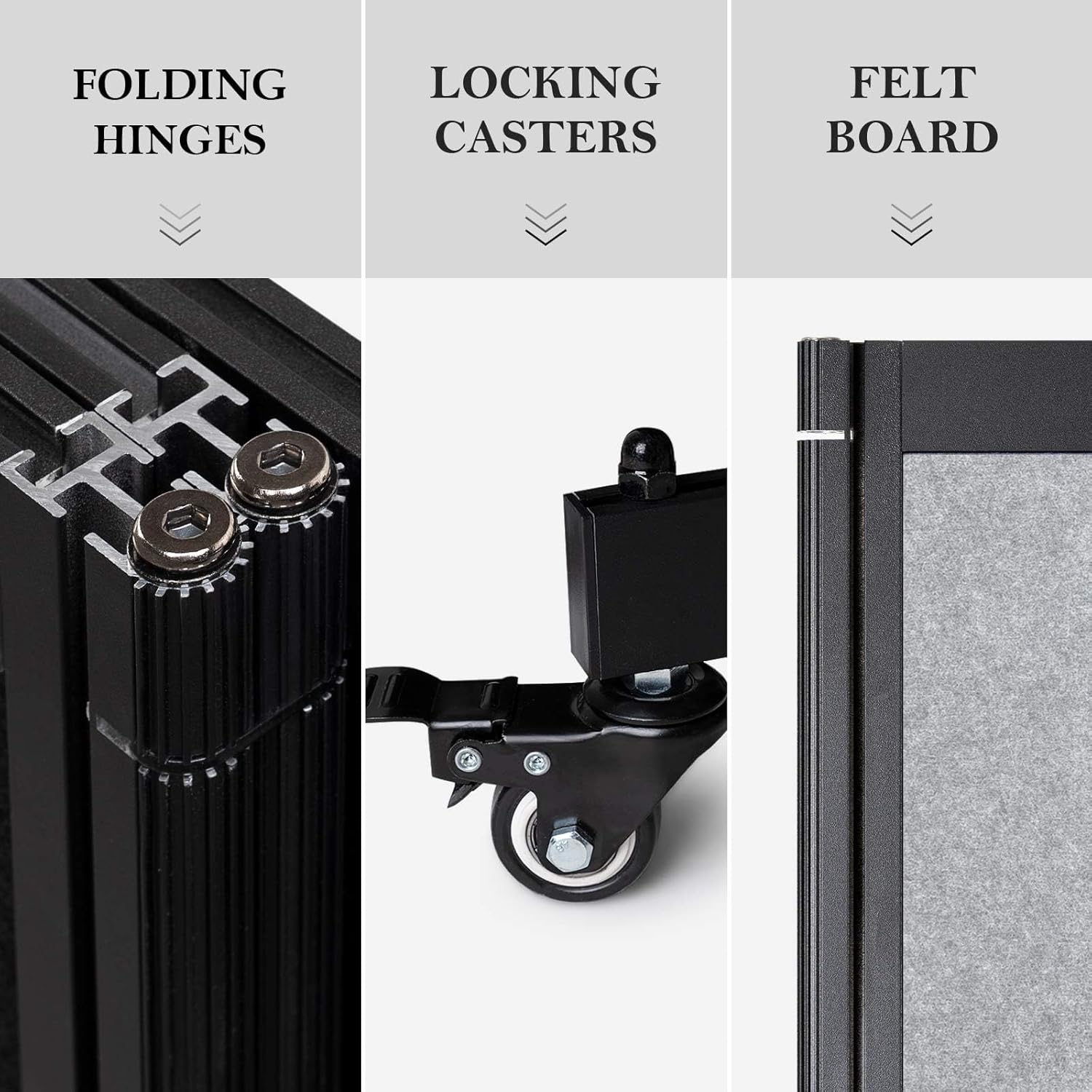 - Portability: Folding dividers come with universal wheels for easy mobility and locking casters to hold the privacy panels in place, making them ideal for creating a small semi-enclosed space in a public environment with greater privacy and security