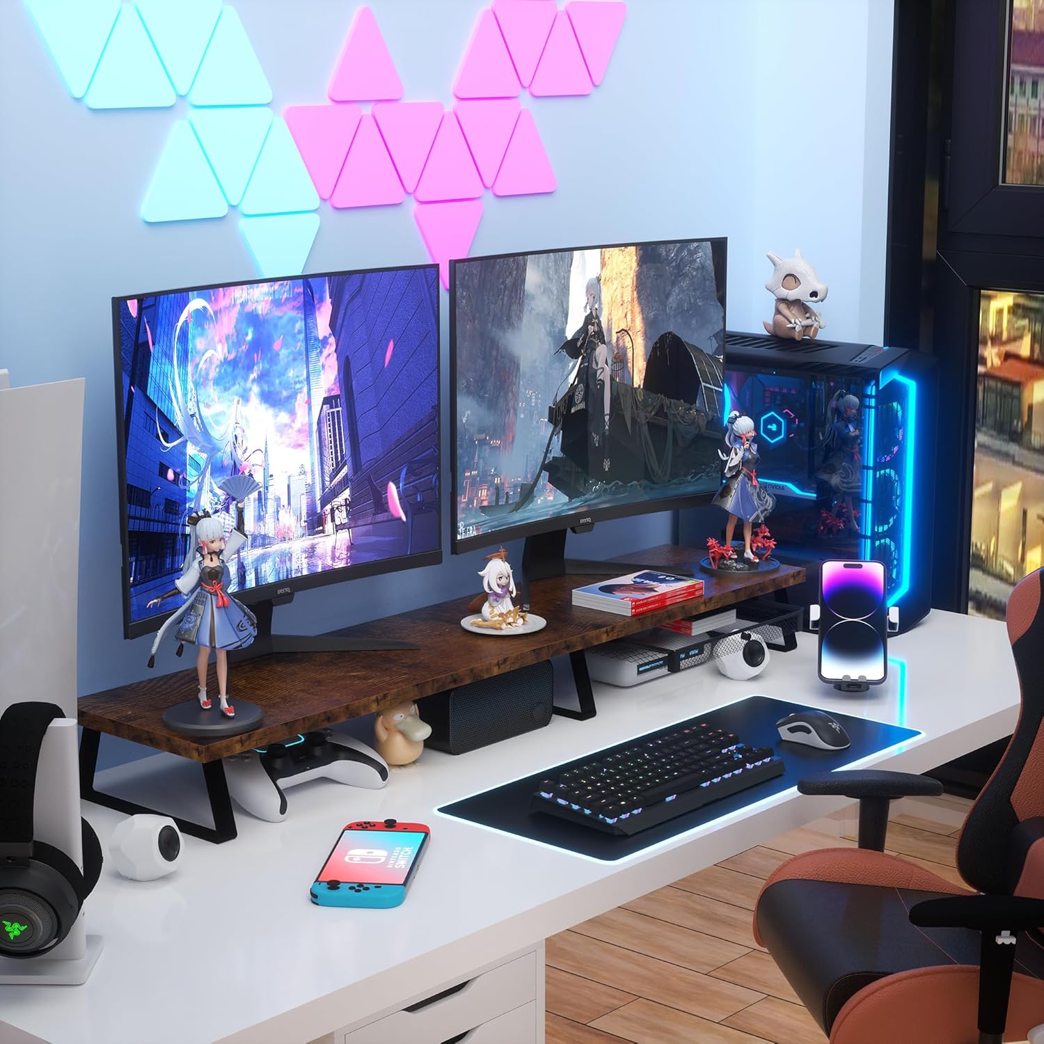 - Computer Monitor Riser: Elevate your monitor or computer to an ergonomic height, promoting an ideal sitting posture and reducing eye strain, neck stiffness, and back pain. This monitor desk riser helps you maintain comfort and productivity throughout the workday by supporting a healthier workspace setup