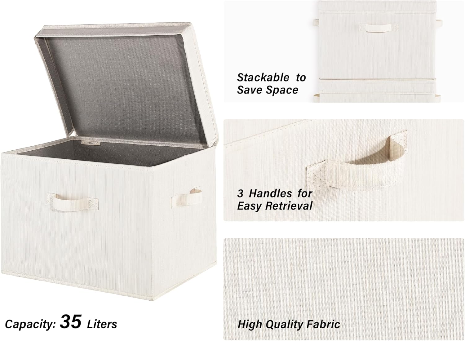 - Storage baskets with lids reinforced with heavy-duty boards can support a weight of up to 25 lbs.