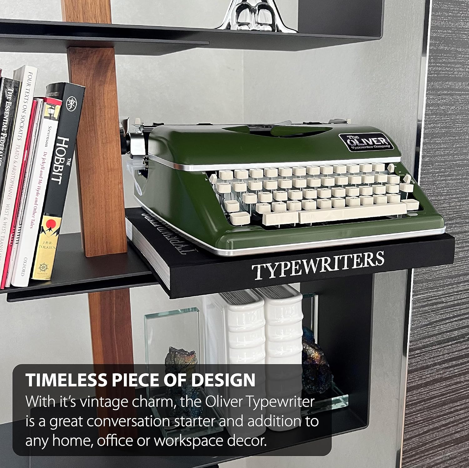 - The Oliver Typewriter Company invites you to take a step back in time, while making a bold statement in the present. Introducing our timeless typewriter, a seamless blend of antique charm and contemporary elegance. This statement piece marries the timeless allure of mechanical craftsmanship with the aesthetic demands of the modern world. Embrace the simplicity and style of a bygone era. Numerous color options, with white or black keys, to perfectly complement your dΓ©cor.