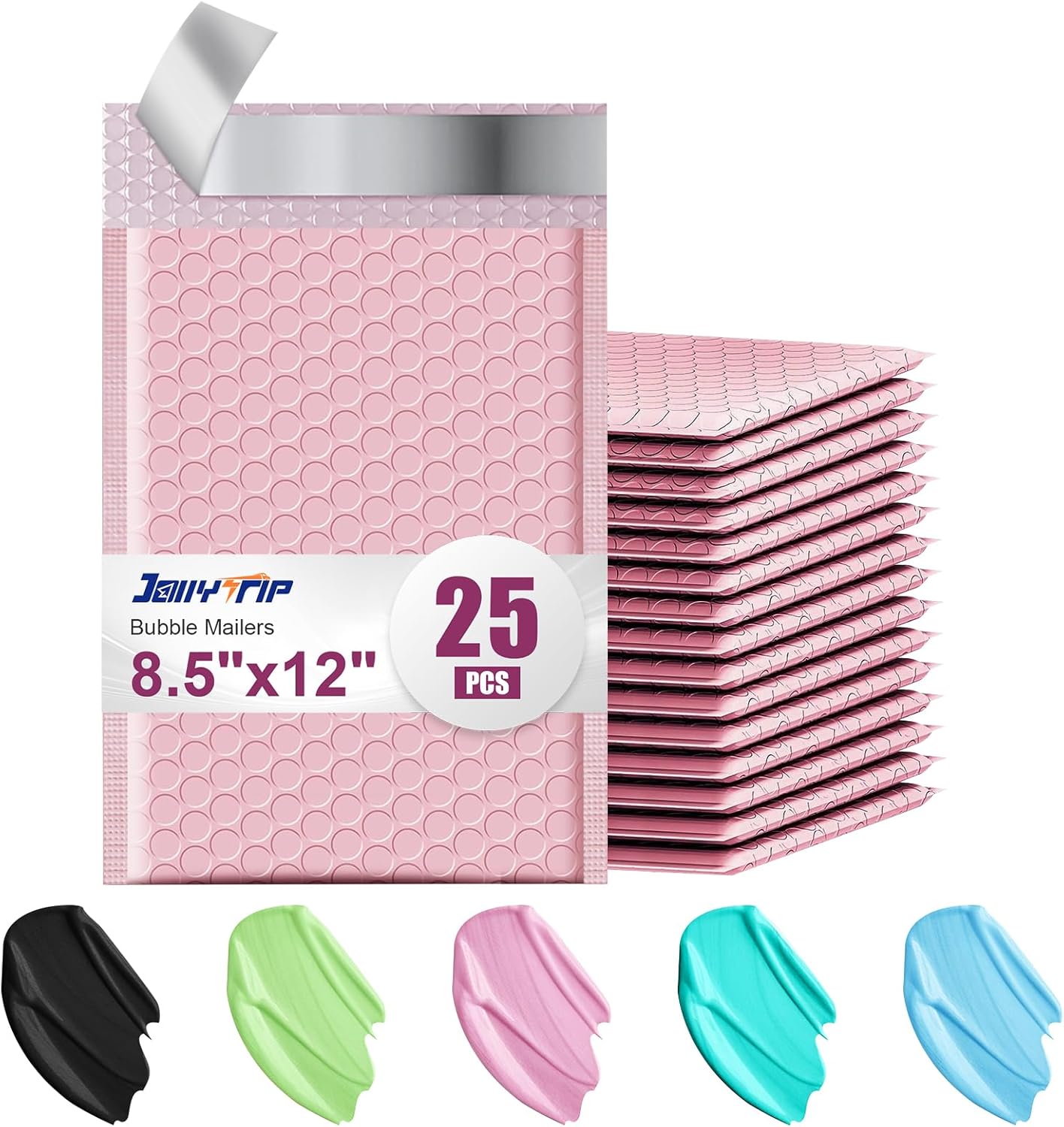 Poly Bubble Mailers 8.5x12 Inch, 25 Pack Padded Envelopes for Shipping, Package Envelopes with Self Seal Adhesive, Waterproof Padded Mailers (Pink, Bulk #2)