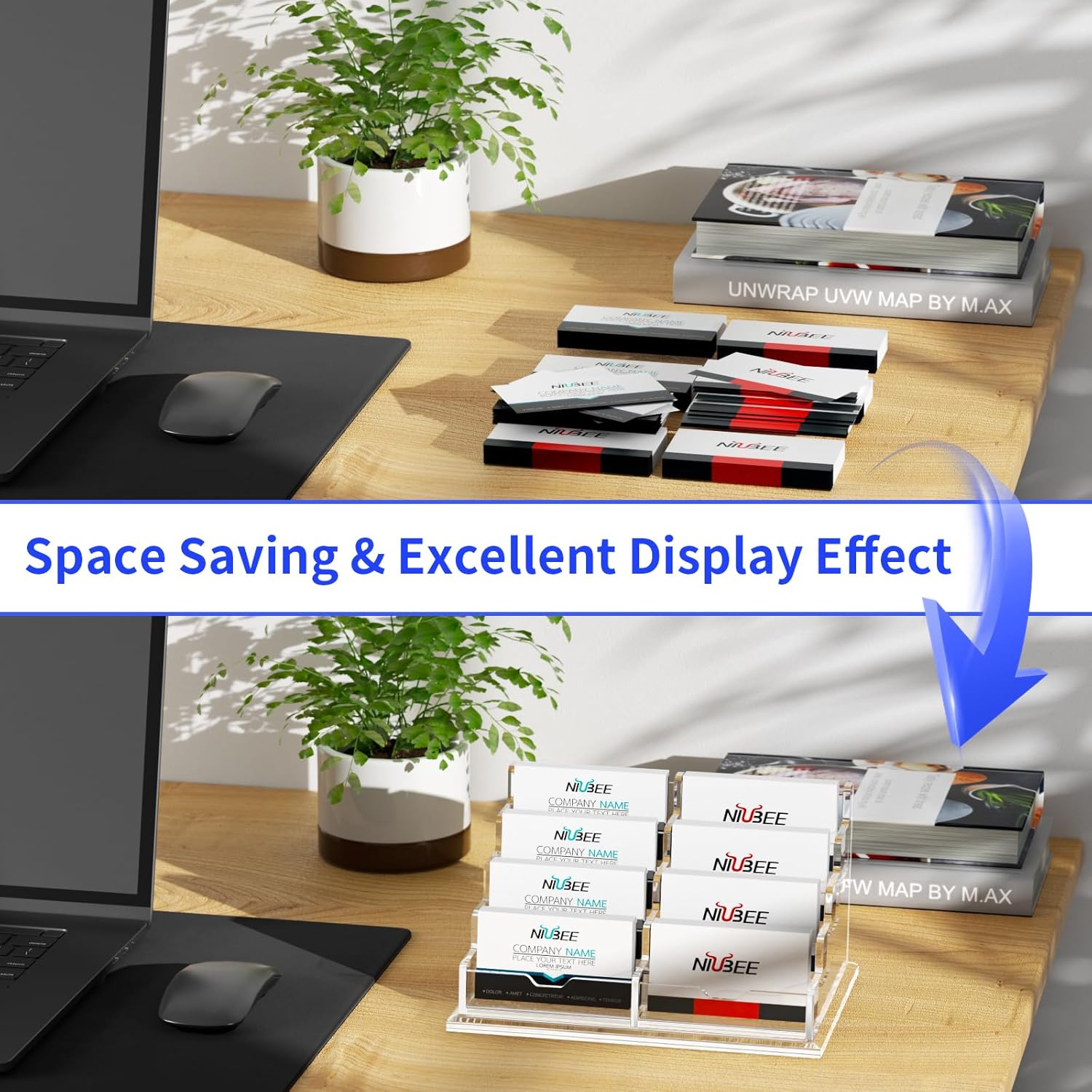 NIUBEE Clear Business Card Holder 4 Tier Acrylic Business Card Stand, 8 Slots Business Card Display for Desk Counter, 600 Card Capacity, 1 Pack