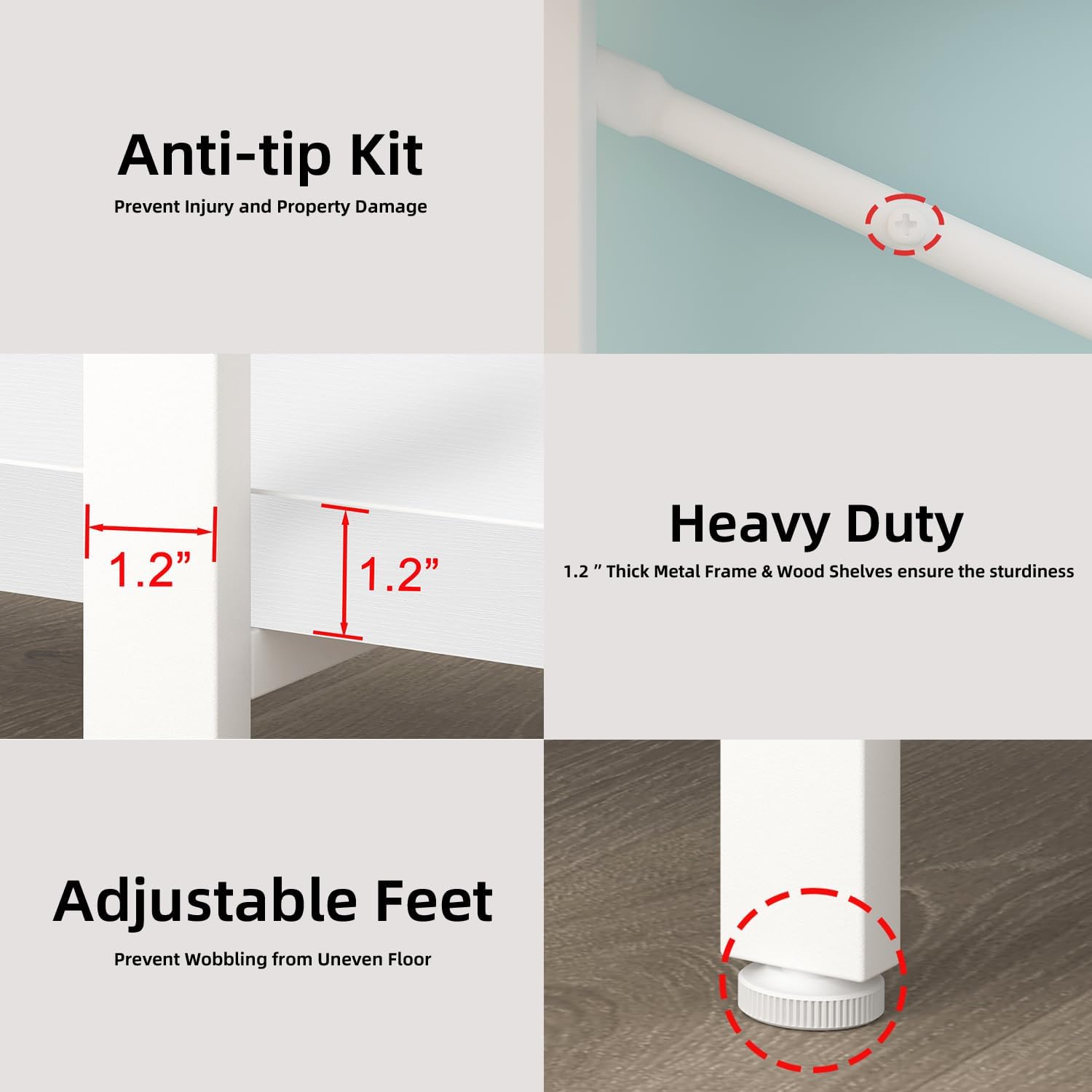- ăAnti-Tip Kit and Easy Assemblyă: Remember to install the anti-tip kit on the wall to enhance stability and reduce the risk of accidents with this industrial 4 tier bookcase. Smart design and all the included tools make assembling this white 4 shelf bookshelves and bookcases a hassle-free task.