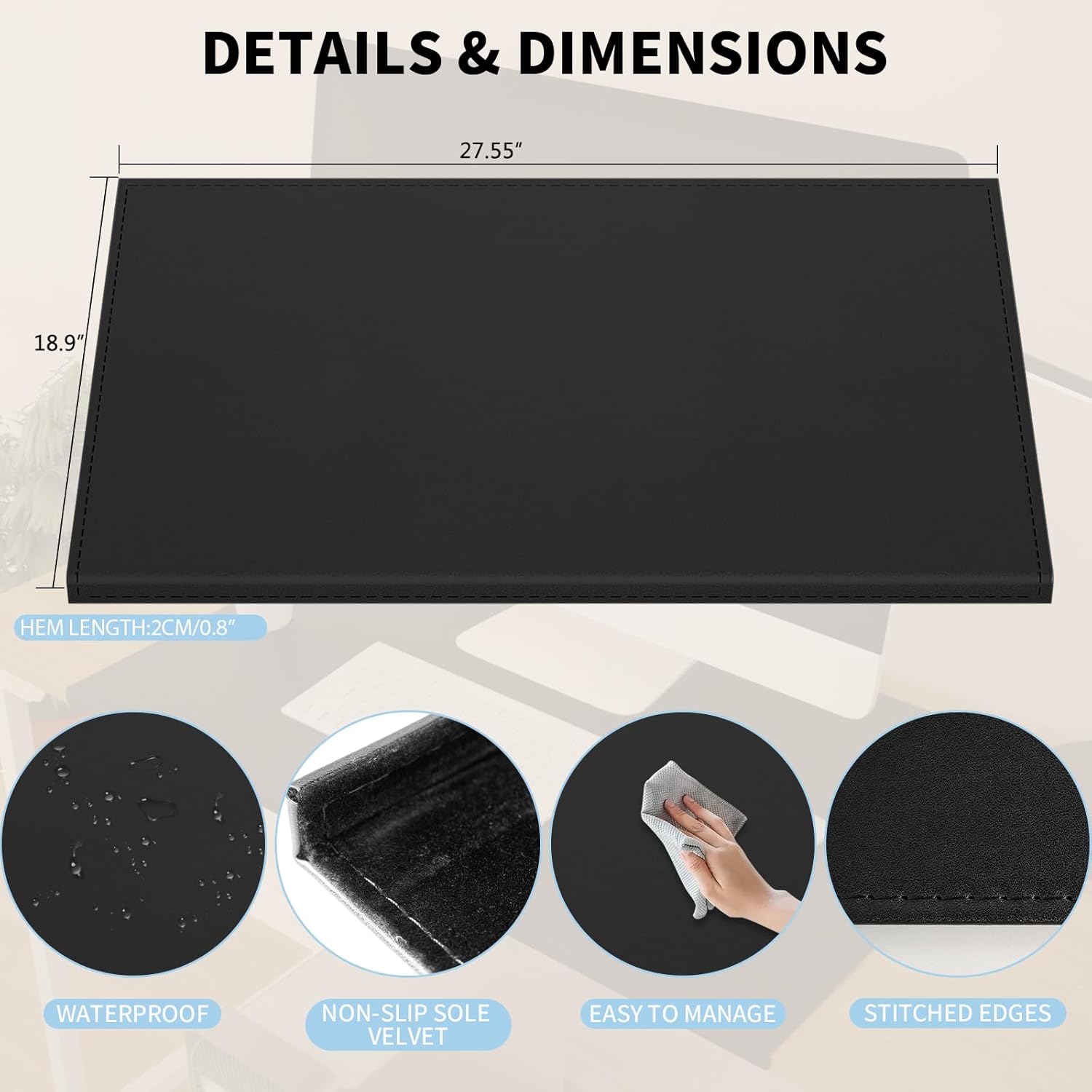 AKOZLIN 27.55”x 18.9" Soft PU Leather Surface Office Desk Mouse Mat Anti-Push Pad with Full Grip Fixation Lip Table Blotter Edge-Locked Protector