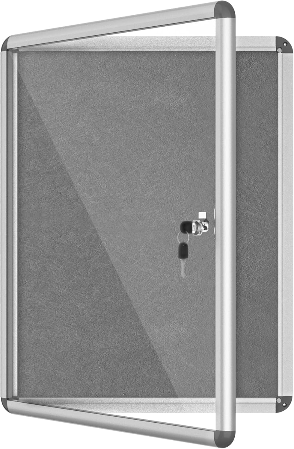 26"x20" Enclosed Bulletin Board, Lockable Weather-Resistant Aluminum Cork Noticeboard for School & Office, Silver Frame w/Grey Flet