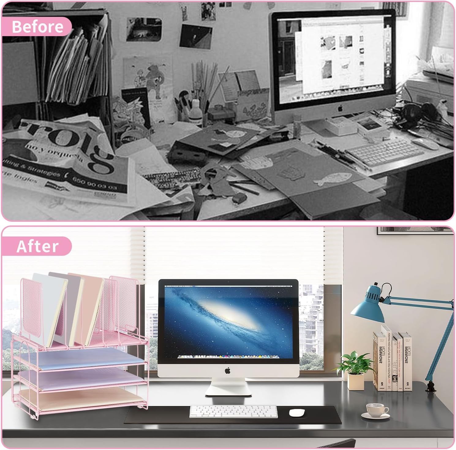 - 【Space saving】The file organizer adopts a vertical spatial structure, which can accommodate more office supplies, save space and facilitate office work. It can provide everything you need, making it perfect for storing magazines, A4 paper, books, and other desktop accessories.