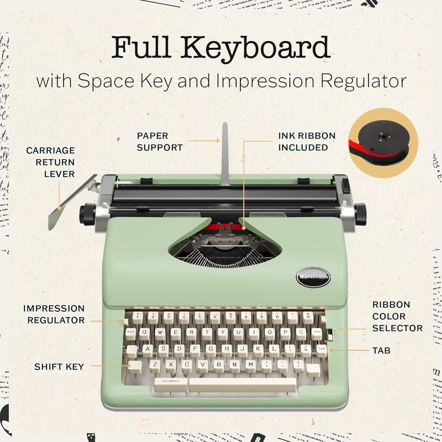 - Timeless Typing Experience: Discover the charm of the Maplefield Vintage Manual Typewriter, a green typewriter that transports you to a bygone era with its satisfying clack and tactile feel. Perfect for those seeking a functional yet aesthetic typewriter for home decor