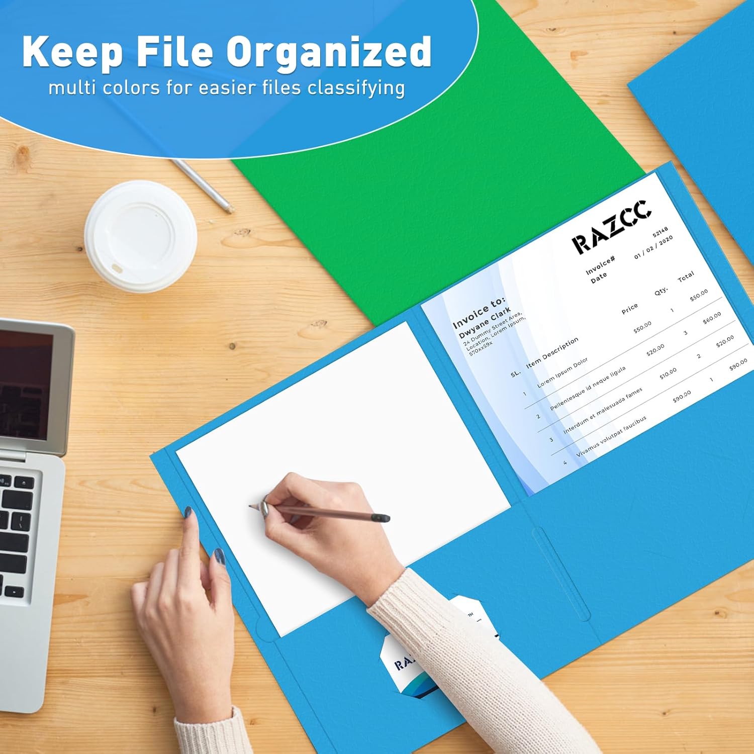 Two Pocket Folders, RAZCC 50 Pack File Folders with Pockets Fit Letter Size Paper, Thick Paper File Folder for School Office Business Home, Assorted 5 Colors