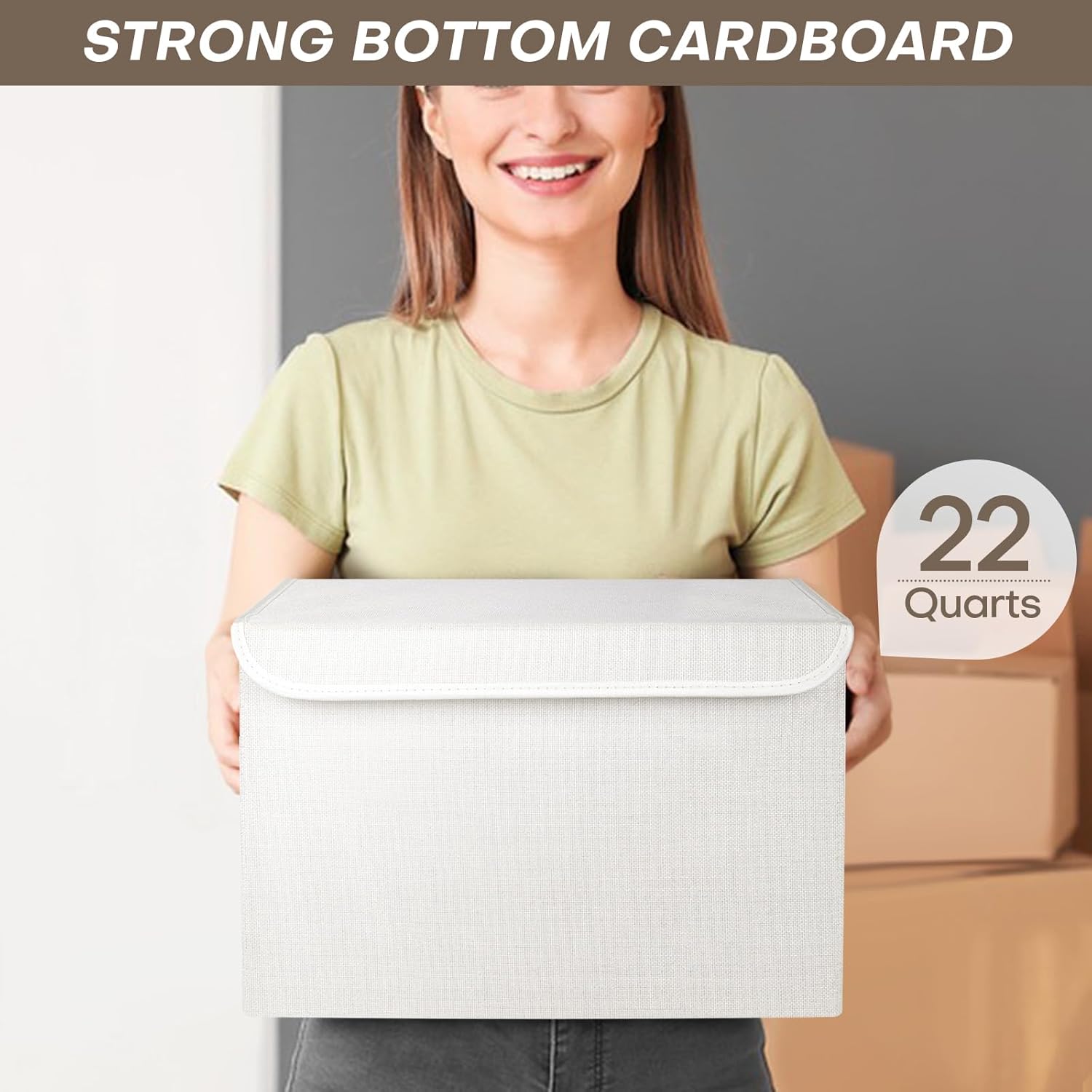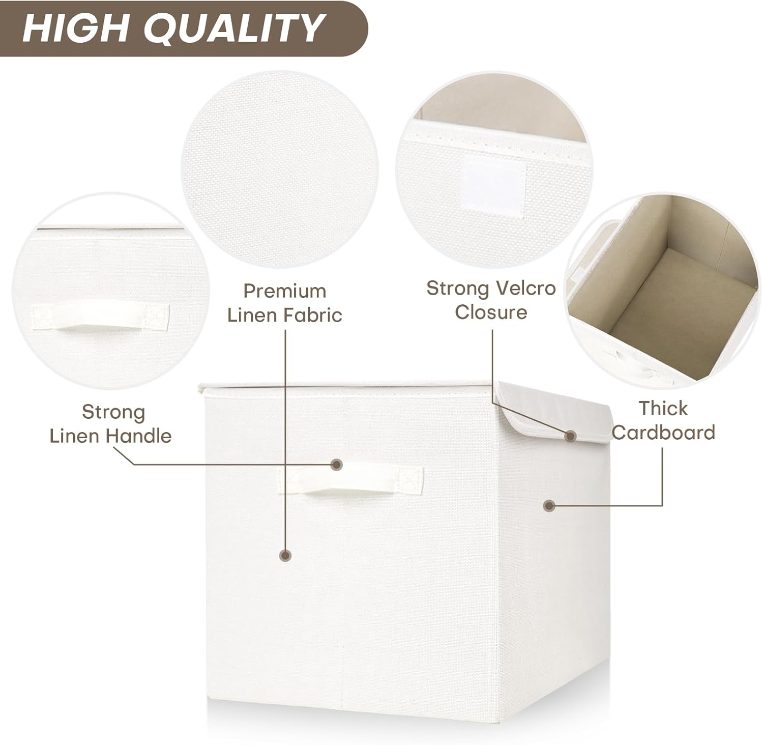 - 【Premium Quality】 -These fabric storage bins with lids are made of durable and breathable linen fabric with the high quality cardboard on the sides and bottom. The fabric is eco-friendly and durable, with no odor. The inner 2.2mm thick cardboard maintains fabric storage box shape and structural integrity. Both handles are sewn through cardboard to make this decorative storage boxes rigid enough to hold a heavy load.