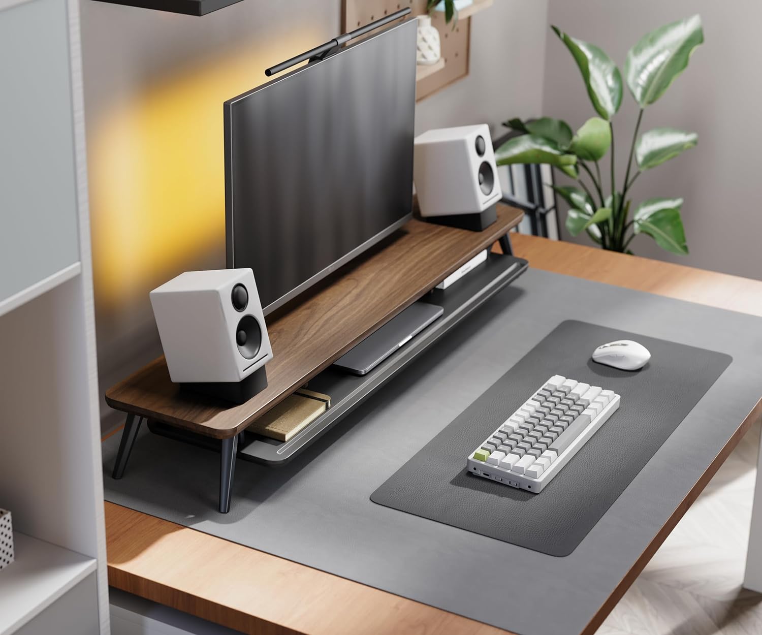- 【2 TIER DESKTOP ORGANIZER】At longest 42.5inch wide,longer size with more space. This laptop riser is big enough to support two monitors. It has 1 universal device holder slot and 3 high capacity compartments. You can easily store your office accessories & supplies under your monitor stand to keep your desktop tidy. Our monitor stand rise comes with cable management slots that can make your cord stay organized.