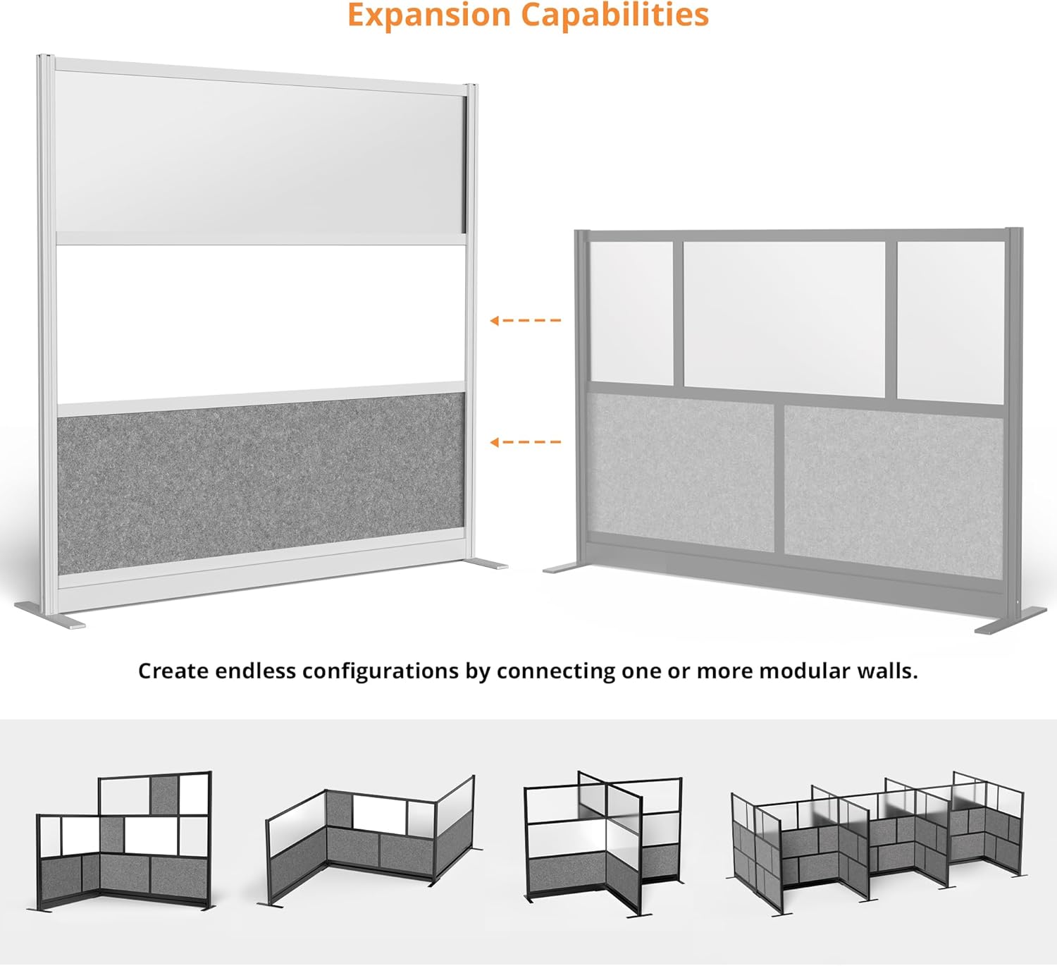 Stand Up Desk Store Workflow Modular Wall | 70'' x 70'' Wall | Expandable Partition Room Divider with Rearrangeable Frosted Acrylic, Sound Absorbent and Whiteboard Wide Panels (Black Frame)