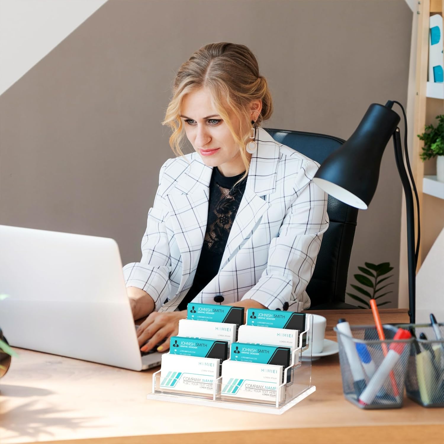 HIIMIEI Acrylic Business Card Display, Multiple Card Holder for Office, Home, Restaurant - 8 Slot, 4 Tier