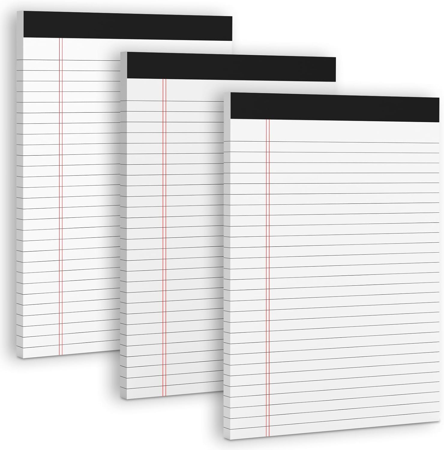 - ăGood Quality Legal PadsăThe white legal pad 8.5"x 11" made of 70g paper material, thicker than average writing pads. Legal notepads 8.5"x 11" letter lined paper pads has black lines and double red margin lines on left, Sturdy white cardboard back allows you to hold the pad in your hand and write smoothly on the go, enjoy a smooth writing experience in everyday paper use and prevent ink from being left on the back or indented writing on the next sheet of paper. Suitable for a variety of pens.