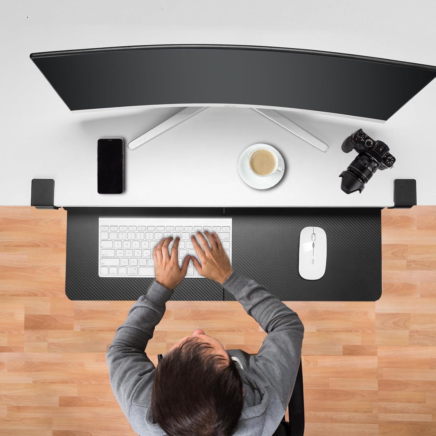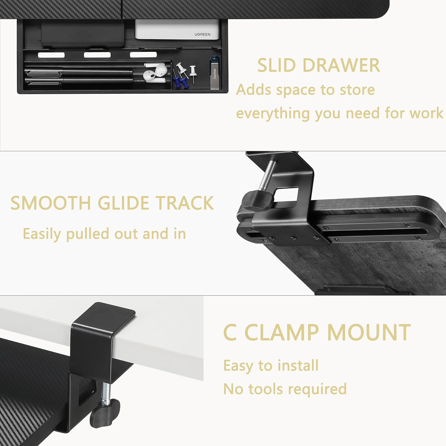 - SLIDING TRAY - The retractable smooth sliding rail design allows the desk drawer to glide smoothly forwards and backward. It encourages you to keep your arms and wrists in a neutral position and aids in the prevention of injuries caused by poor posture. Simply slide the tray under your desk when not in use and quickly pull it out when you need more space.