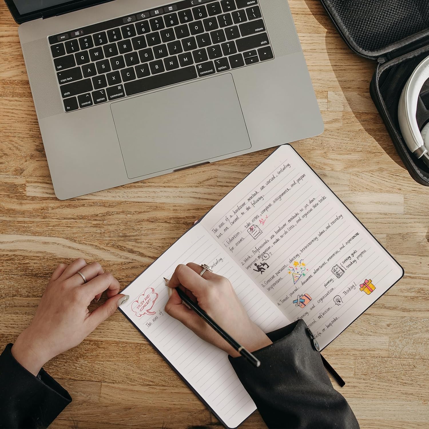 - 【Premium A5 Hardcover Journal】5.5"x8.3" (14x21cm) College-Ruled, Journaling Notebook with 120 Sheets (240 Pages), Featuring Soft-Touch Vegan Leather Cover for Daily Writing Durability.