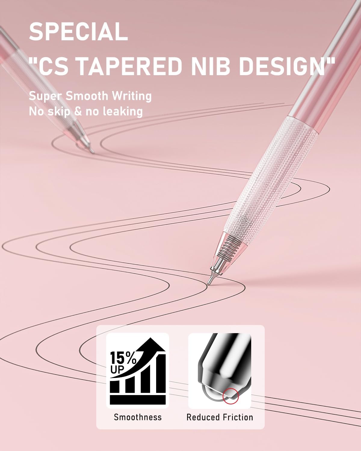 - Smooth & Versatile Nibs: Enjoy buttery-smooth writing with premium cute pens that glide effortlessly. Includes ST, bullet, CS tapered nibs, and a 4mm highlighter tip—ideal for notes, journaling, drawing, and highlighting. Built-in spring tips ensure steady ink flow and crisp lines for a smooth, stress-free writing experience