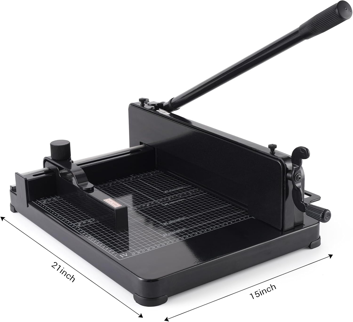 - ★【Solid Steel Construction】:Solid steel construction ensures heavy duty paper cutter will last a long time and you'll be able to tell the moment you pick it up. Rubber feet at each corner stop the heavy duty paper cutter from sliding during use, and a removable handle allows for easier storage.