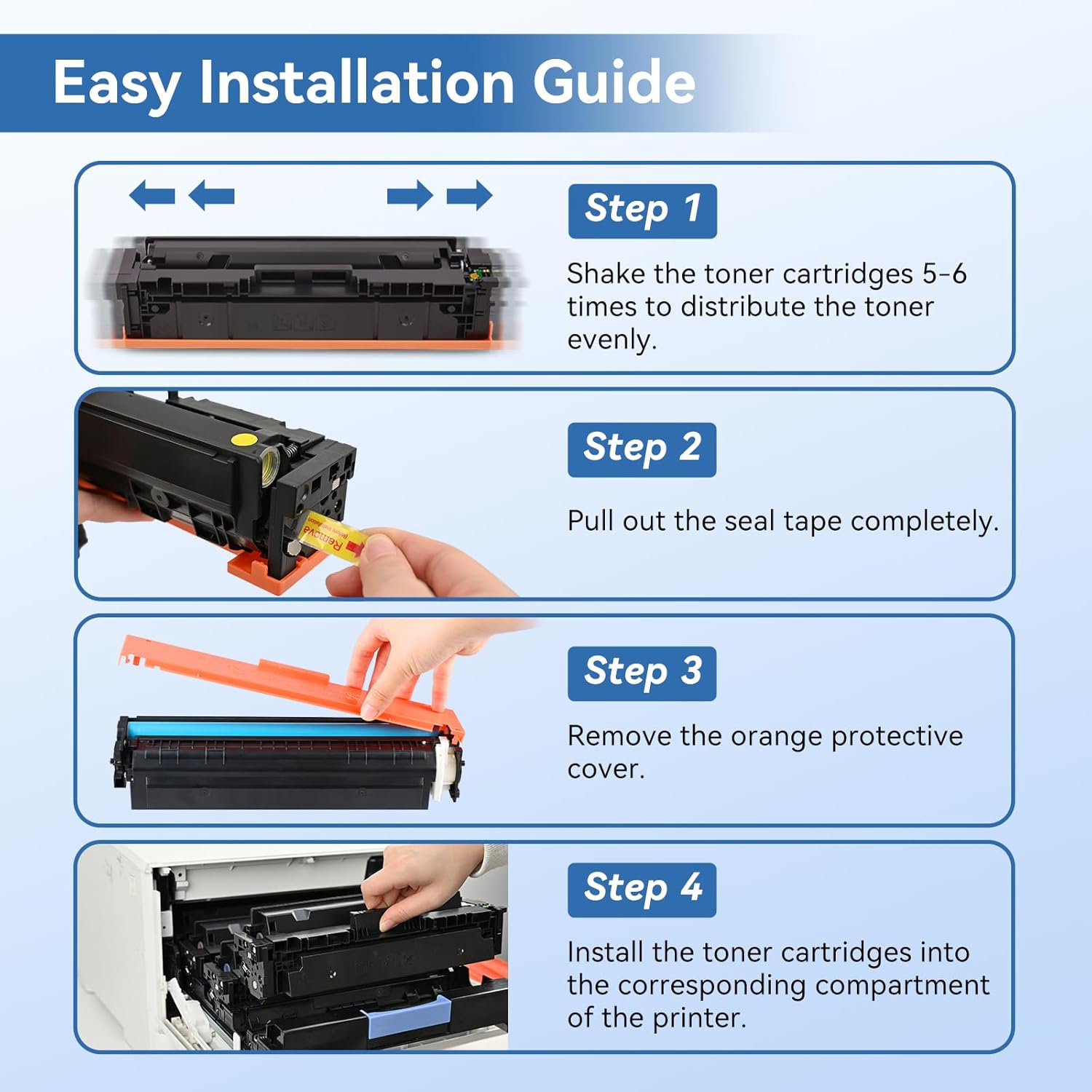 - Easy Installation: 206A 206X Toner Cartridges 4 Pack come with chips, which are designed for easy installation and better replacement compatible with M255, MFP M282 and MFP M283 series printers, eliminating the need to transfer chips from old cartridges