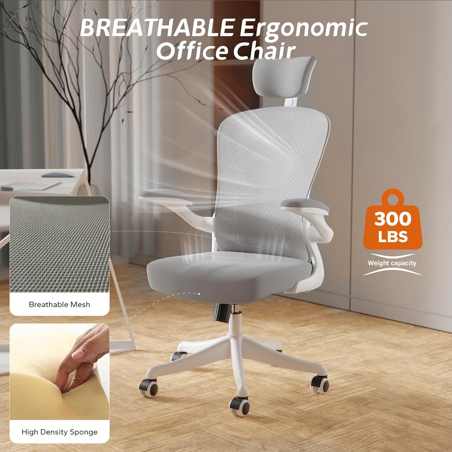 - 【Rocking 90-135° & Flip Up Armrest & Mute Rolling Wheels】This ergonomic office chair height can be adjusted according to your needs, allowing you to find the most comfortable sitting position. The maximum tilt of the office chair is 135°. The desk chair with the flip up arms and mute rolling castor wheels can swivel 360°, which can create more possibilities for your life and work