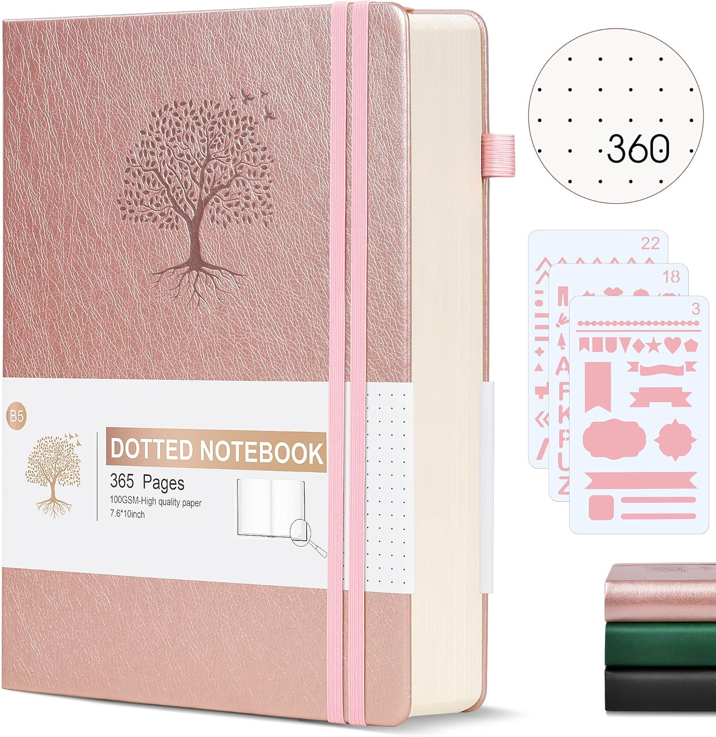 Dotted Journal Notebook, 360 Numbered Pages Bullet Dot Grid Journals, 100gsm Dot Paper Thick Hardcover Leather Journal for Writing Women Men, B5 Big Dotted Grid Notebooks 7.6'' X 10'' Pink