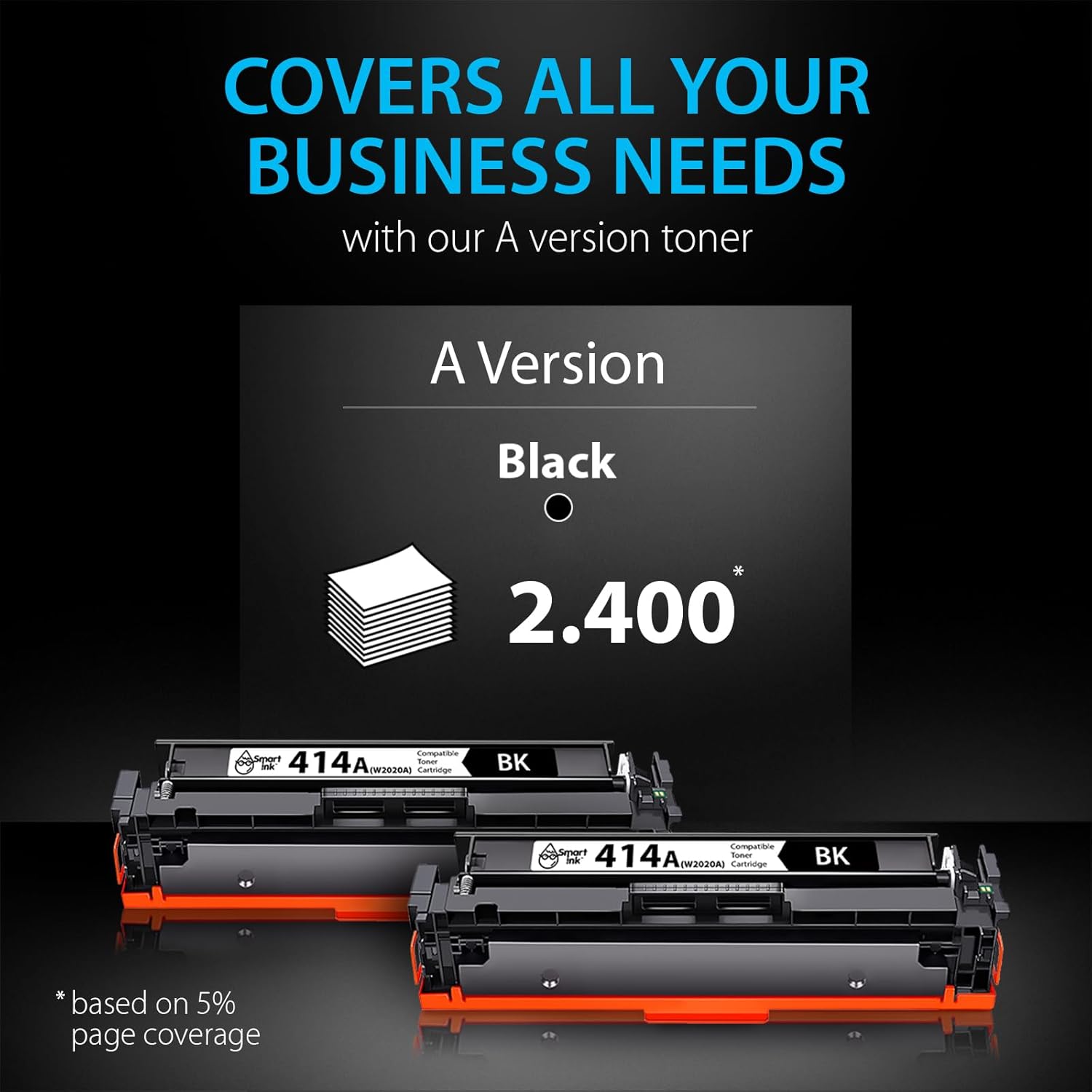 Smart Ink Compatible 414A Toner Cartridge Replacement for HP 414 A with Built-in Chip (2 Black Pack) to use with Color Laserjet Pro MFP M479fdw M479fdn M479fdw M454dw M454dn