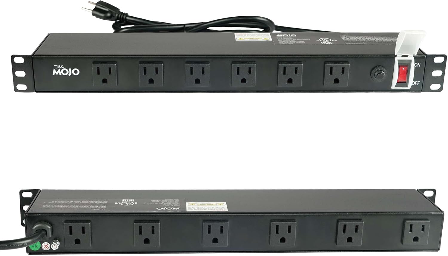 Tecmojo 1U Rackmount Network-Grade PDU Power Strip, 12 Wide-Spaced Right Angle Outlets, Circuit Breaker 12A (UL Certified 12A) 6ft Cord w/ 5-15P Plug, Black