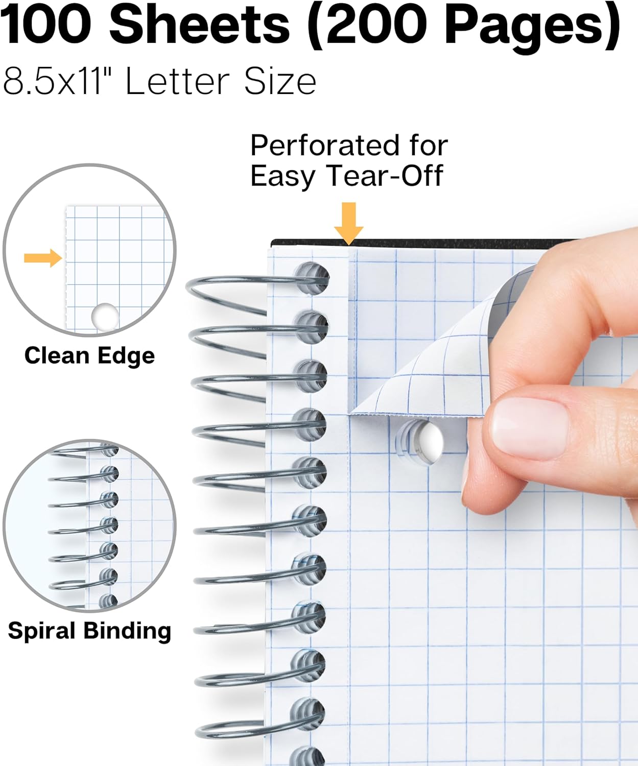 - Graph Ruled Spiral Notebook: Black plastic cover resists moisture, Protects your valuable class notes, assignments, and homework.