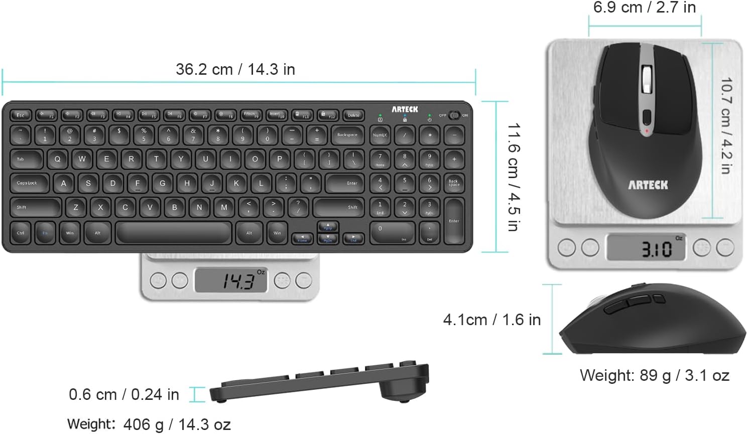 - What You Get: Arteck HW305-2 Wireless Keyboard, MW167 Wireless Mouse, one nano USB receiver for both keyboard and mouse (stored in the back of the mouse), USB-C charging cable, welcome guide, our 24-months warranty and friendly customer service.