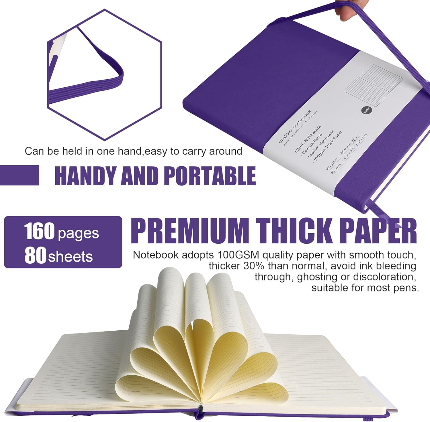 Lined Journal Notebook, 160 Pages, Medium 5.7 inches x 8 inches - 100 gsm Thick Paper, Hardcover (1, Purple)