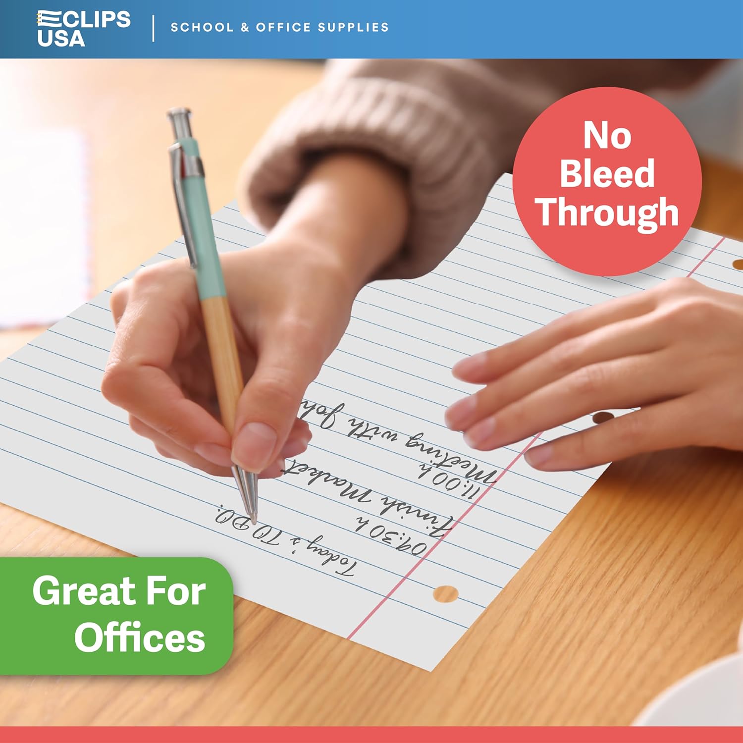 - FITS IN 3 RING BINDERS - Loose leaf paper college ruled fits most 3 ring binders. High quality College ruled notebook paper to prevent tearing from binders.